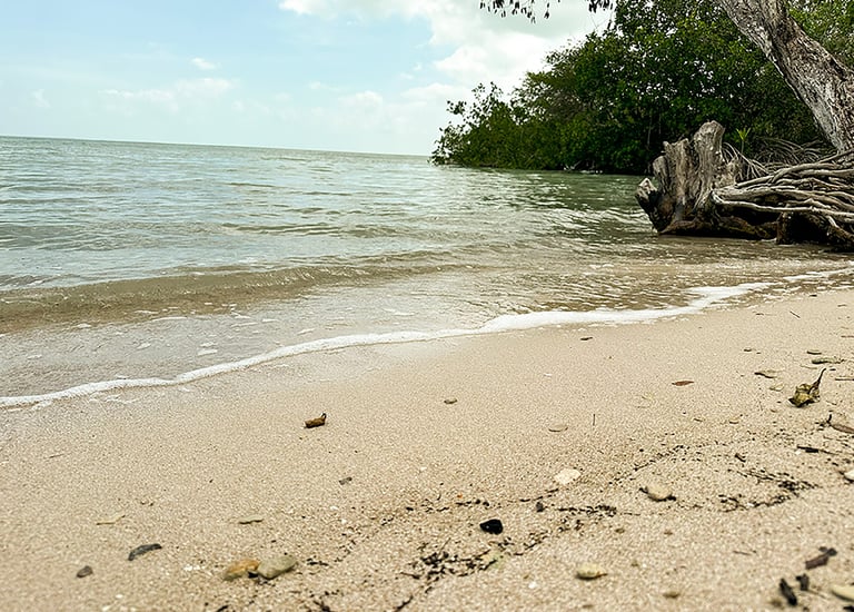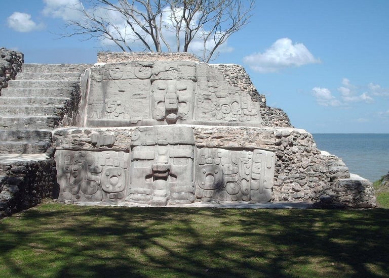 Nestled on Corozal Bay, Puerto Amalia sits beside the ancient Cerros Maya ruins, blending history with seaside calm.